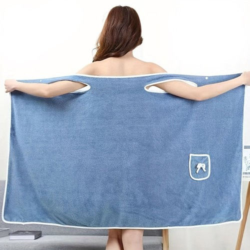 80*135cm Wearable Bowknot Coral Velvet Bath Towel for Adults - Light Blue