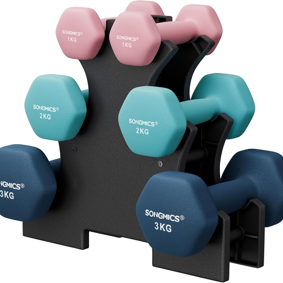 SONGMICS Hantel-Set, 3 Paar, 1kg-3kg,9kg oder 12kg, Aufbewahrung, Fitnessstudio