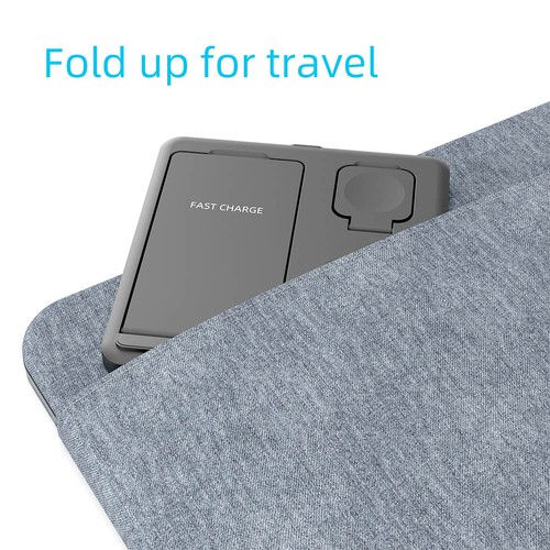 C18 15W Mobile Phone Wireless Charging Stand, 3-in-1 Folding Wireless Charger f