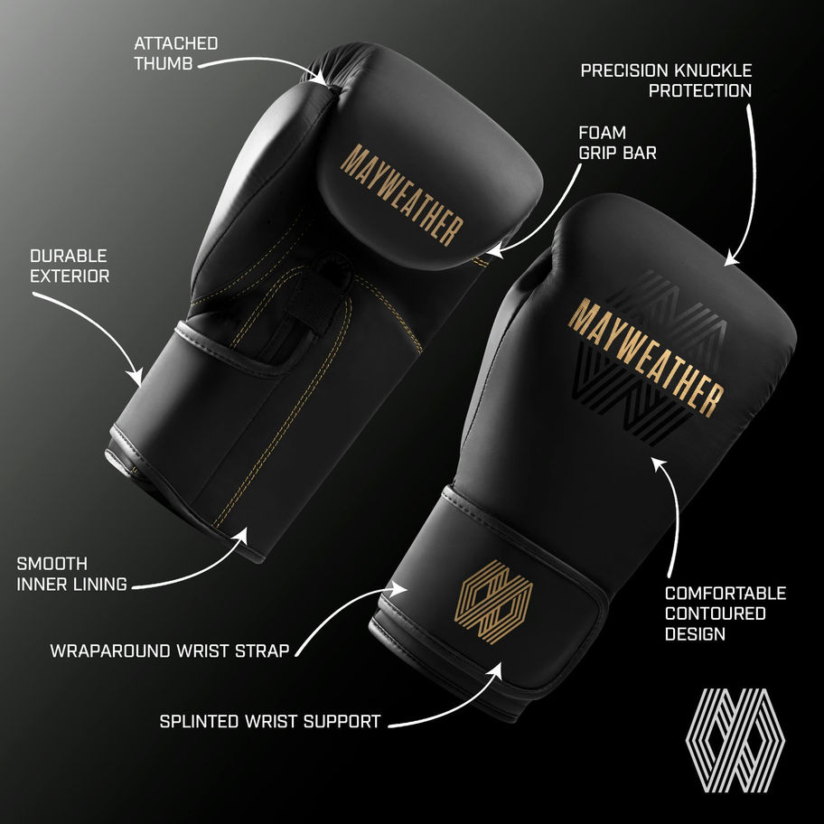 Hayabusa Mayweather Core Boxing Gloves For Men and Women - Black/Gold, Large/X-