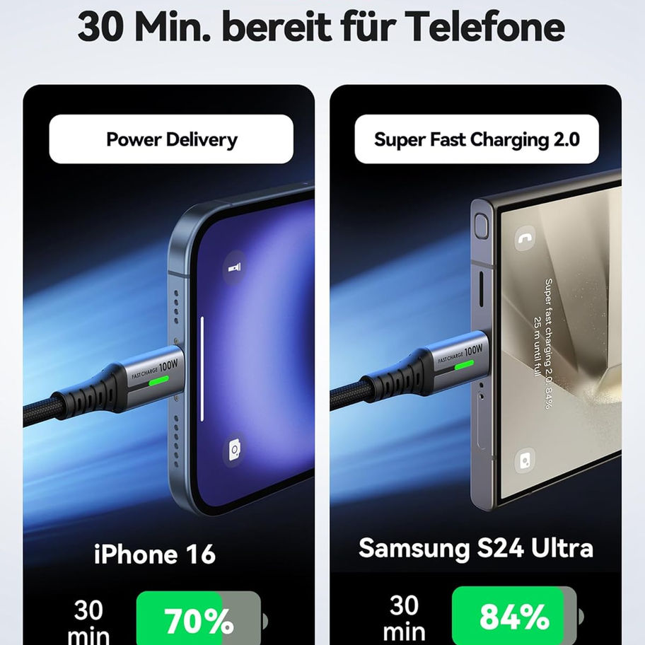 INIU USB C Kabel, 100W [2m] PD3.0 Schnellladekabel USB C auf USBC, Nylon Gefloc
